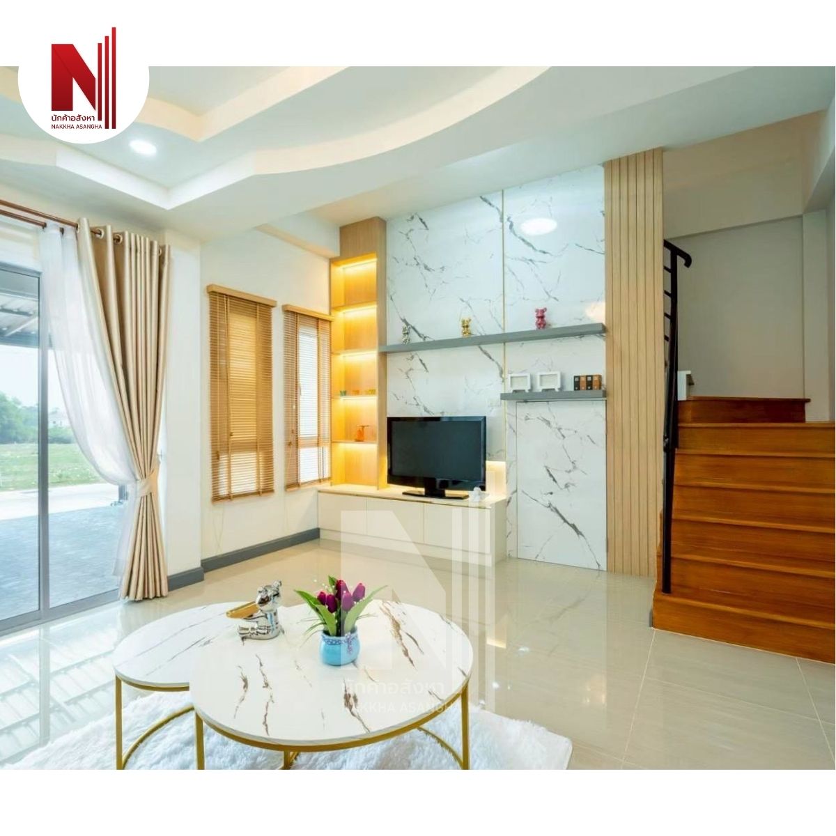 ✨ ดีไซน์ทันสมัย: ตัวบ้านออกแบบมาให้โปร่งโล่ง สวยงาม พร้อมฝ้าหลุมดีไซน์หรูในห้องรับแขก เพิ่มความหรูหราให้กับการพักผ่อน